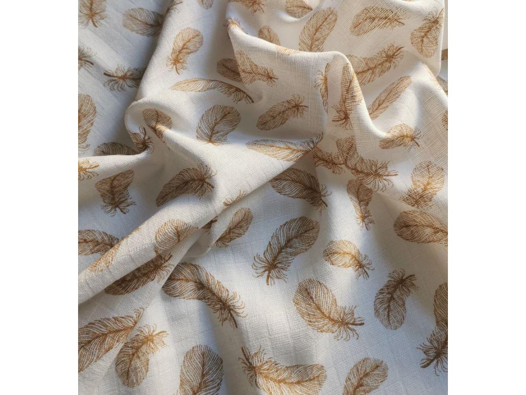 Bavlněná plena 70x70cm s pírko hnědé nabízí eleganci a kvalitu.