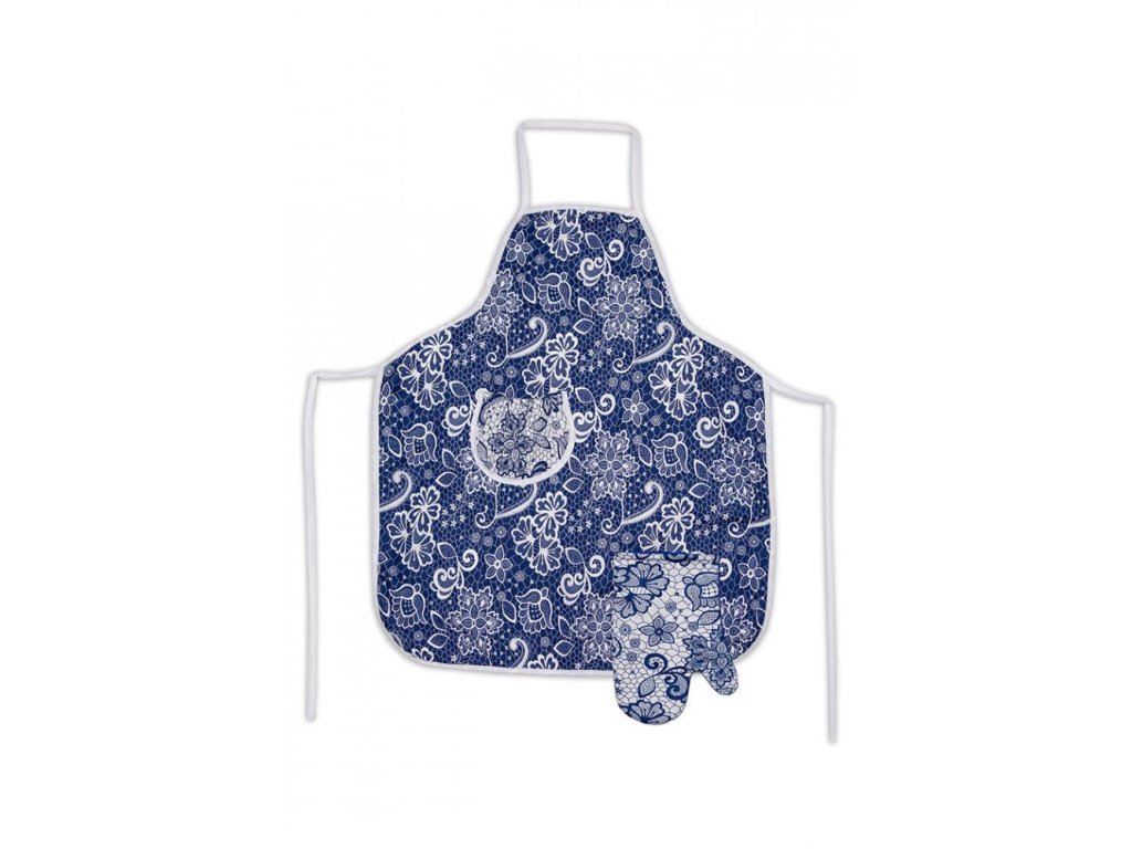 Dámská zástěra s laclem v modrobílé je elegantní a praktická volba do kuchyně.