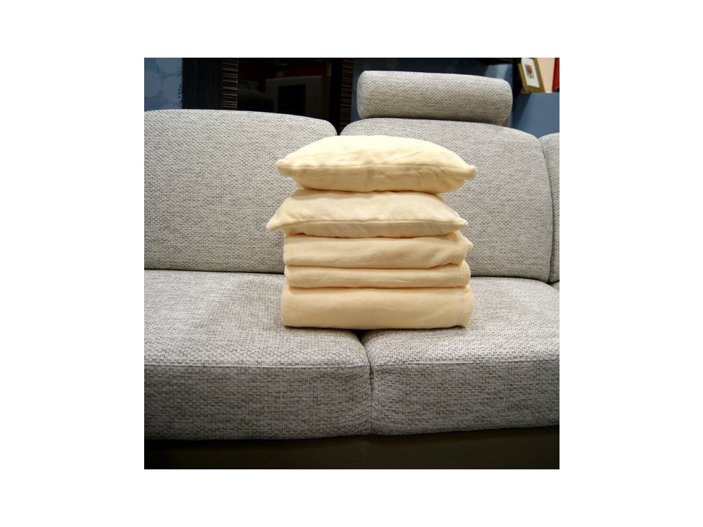 - Balení obsahuje jednu soupravu: přehoz na gauč o rozměrech 150x200 cm, dva potahy na křesla 70x140 cm a dva povlaky na polštáře 40x40 cm. Gramáž 300g/m², materiál 100% polyester - mikroflanel.