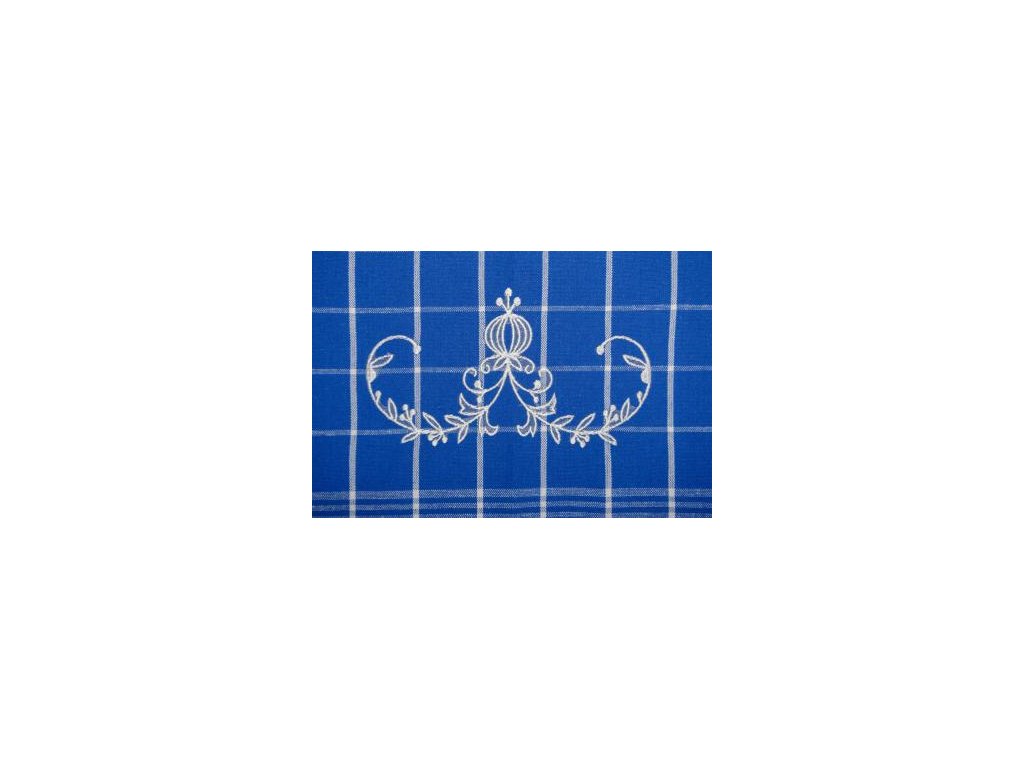 - Elegantní modrá s bílou výšivkou, ideální pro každý typ kuchyně.