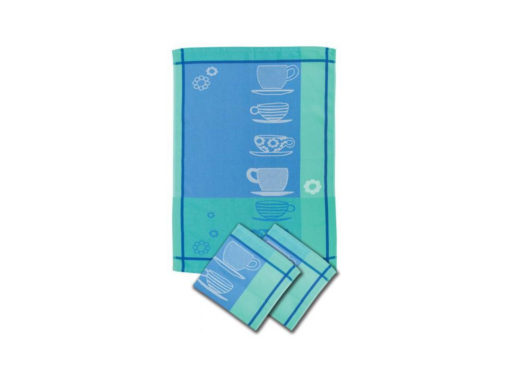 Žakárové utěrky s motivem šálků v tyrkysové nabízí eleganci a skvělou savost.
